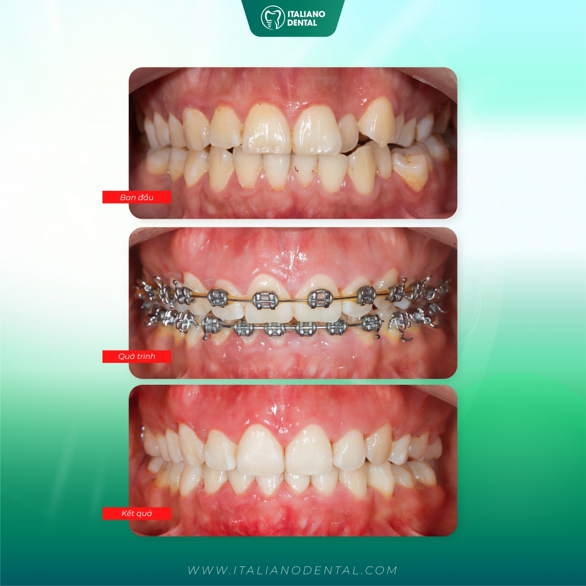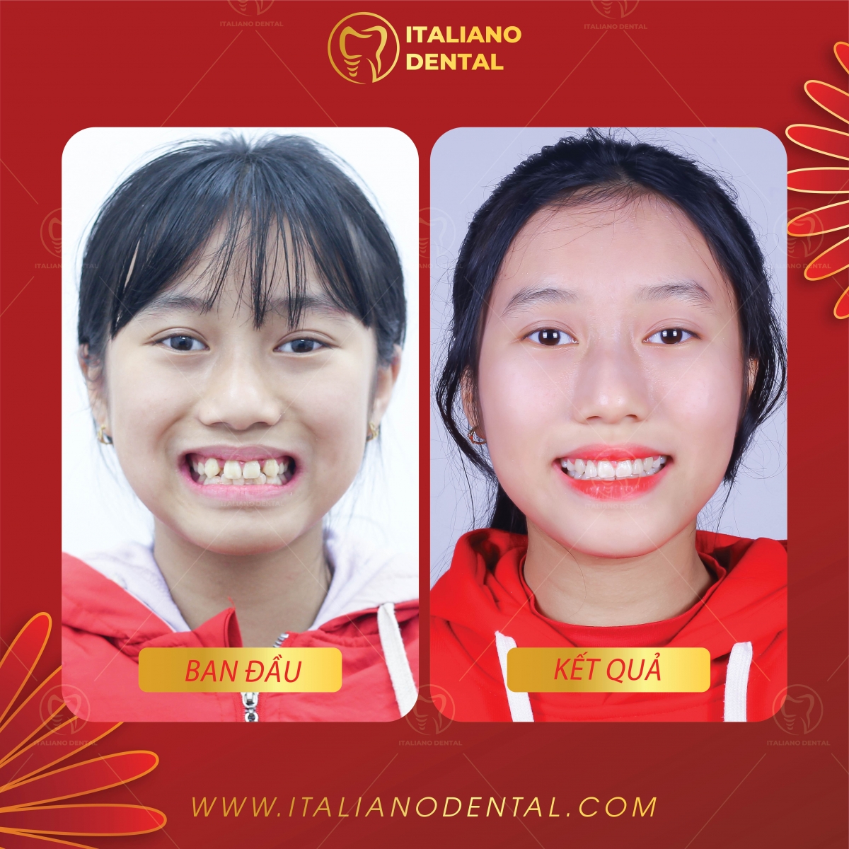 Chị Nga chia sẻ là mình có tình trạng răng không đều và có hô. Do tình trạng răng như vậy nên đi đâu giao tiếp cũng khiến chị bị tự ti. Có một số bạn đã khuyên chị nên đi niềng răng nên chị đã tìm hiểu và lựa chọn nha khoa Italiano để thực hiện niềng răng. Trước khi niềng thì chị đã rất lo lắng nhưng sau khi niềng xong thì chị thấy khá hài lòng về kết quả sau khi niềng của mình.