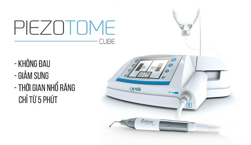 - Phương pháp sử dụng công nghệ nhổ răng có hỗ trợ của máy Piezotome: Với máy rung Piezotome hiện là công nghệ nhổ răng hiện đại nhất hiện nay với nhiều ưu nhiểm như thực hiện nhanh chóng, giảm sang chấn, phục hồi nhanh và giảm đau nhức sau khi nhổ